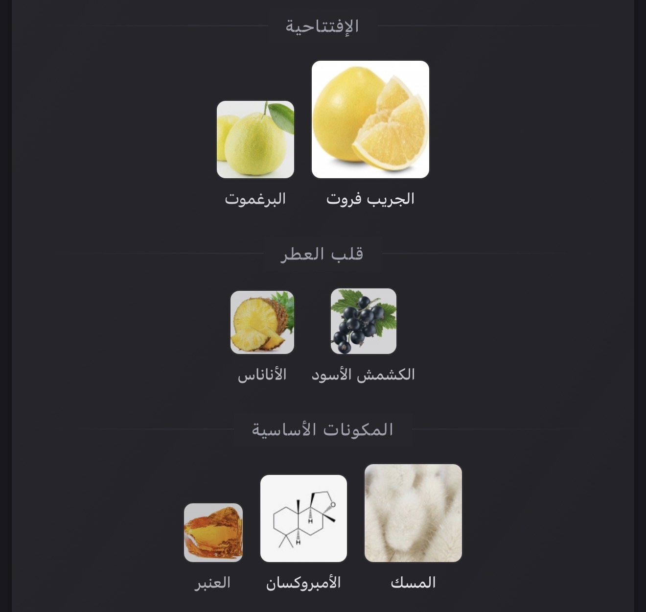 عطر للجنسين. هذا عطر جديد Risvelium صدر عام 2025. Alessandro Gualtieri قام بتوقيع هذا العطر. إفتتاحية العطر الجريب فروت و البرغموت; قلب العطر الكشمش الأسود و الأناناس; قاعدة العطر تتكون من المسك, الأمبروكسان و العنبر.