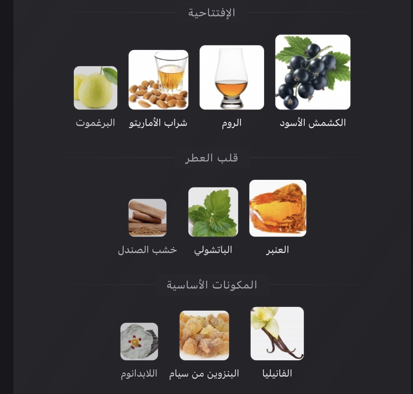 عطر شرقي - خشبي للجنسين. هذا عطر جديد Il Padrino صدر عام 2025. Il Padrino من توقيع Nathalie Templer و Salah Al Zarooni. إفتتاحية العطر الكشمش الأسود, الروم, شراب الأماريتو و البرغموت; قلب العطر العنبر, الباتشولي و خشب الصندل; قاعدة العطر تتكون من الفانيليا, البنزوين من سيام و اللابدانوم.