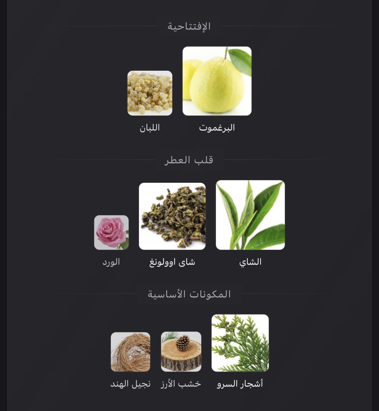 عطر خشبي - أروماتك للجنسين. هذا عطر جديد Above the Waves صدر عام 2025. إفتتاحية العطر البرغموت و اللبان; قلب العطر الشاي, شاى اوولونغ و الورد; قاعدة العطر تتكون من أشجار السرو, خشب الأرز و نجيل الهند.