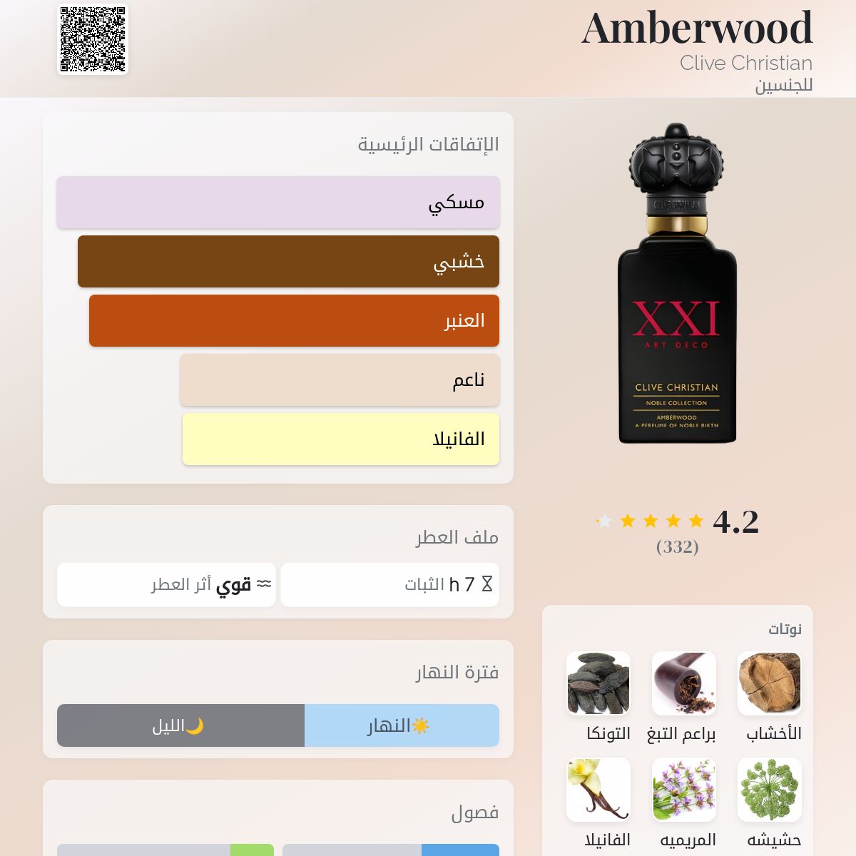 عطر شرقي - خشبي للجنسين. Amberwood صدر عام 2022. Ilias Ermenidis قام بتوقيع هذا العطر. إفتتاحية العطر الأنجيليكا , المريمية, البرغموت و الفلفل الوردي; قلب العطر الأخشاب, التبغ, الباتشولي و جزئ هيلفيتوليد; قاعدة العطر تتكون من حبوب التونكا, المريمية, الفانيليا, المسك, أخشاب الكشمير, الأمبروكسان, السوسن, العود, اللابدانوم و السيبرول (الناجراموثا).