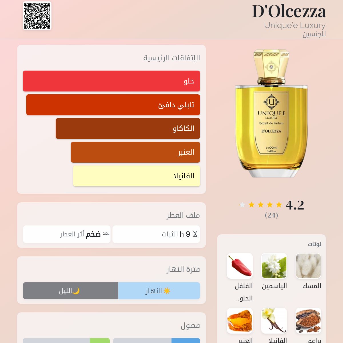 عطر شرقي - فانيليا للجنسين. هذا عطر جديد D'Olcezza صدر عام 2026.