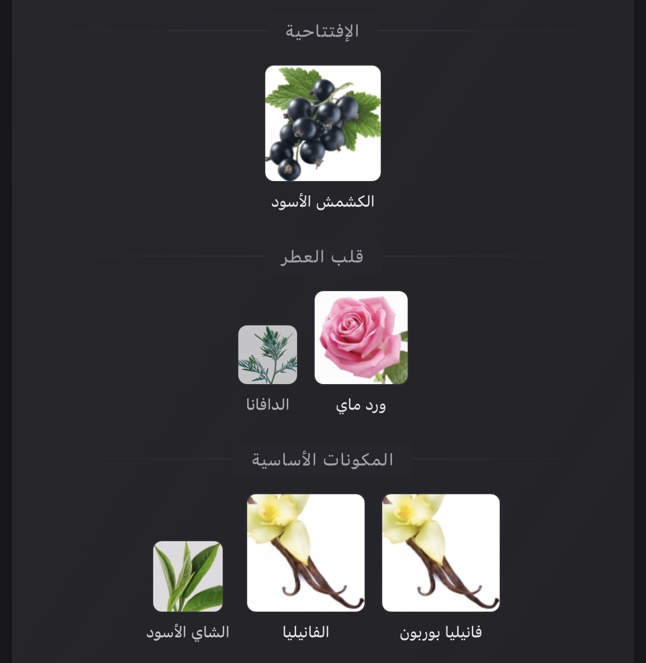 عطر تشيبر - زهري للنساء . Si Eau de Parfum Intense صدر عام 2023. إفتتاحية العطر الكشمش الأسود; قلب العطر ورد ماي و الدافانا; قاعدة العطر تتكون من فانيليا بوربون, الفانيليا و الشاي الأسود.